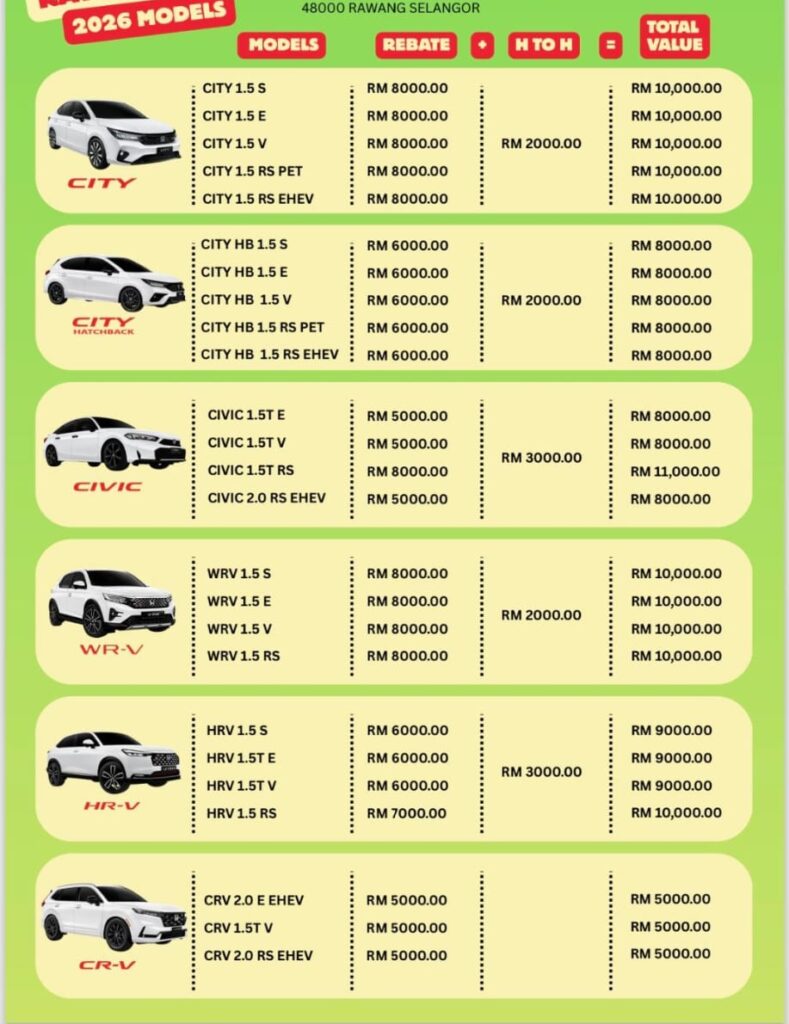 Hubungi saya sekarang untuk tempah kereta Honda idaman anda. Saya sedia membantu anda merialisasikan impian anda untuk memiliki kereta Honda. Pandu pulang kereta baru anda hari ini!